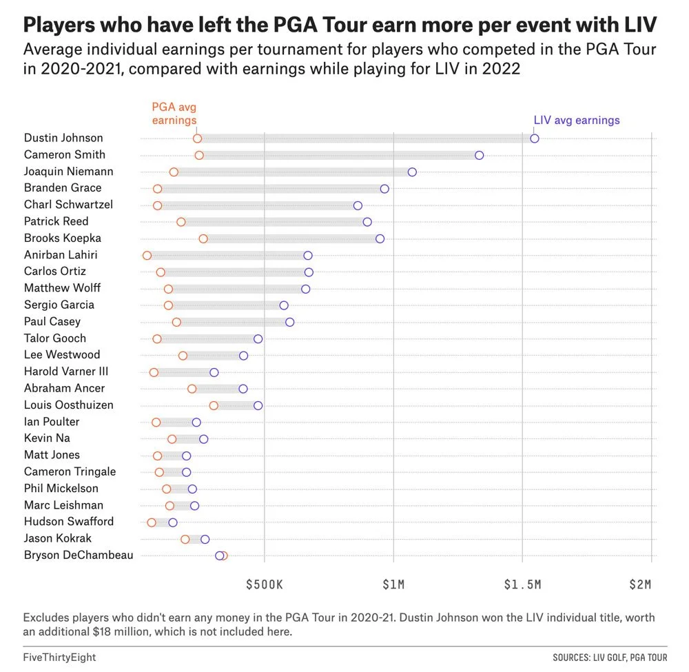 Read the full story here: How LIV Golf Is Tearing The Sport Apart, In 3 Charts.